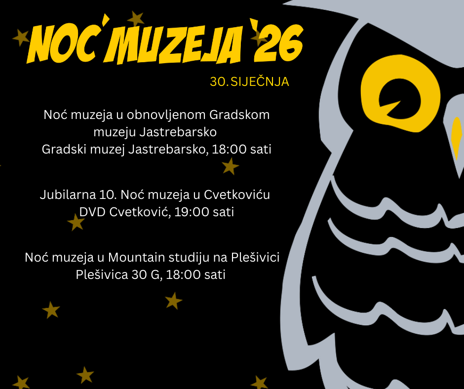 „Pozivamo vas da nam se pridružite u Gradskom muzeju Jastrebarsko, naša prva Noć muzeja nakon obnove zgrade ispunjena je raznolikim sadržajem, za sve Jaskance i goste“, poziva kustosica Muzeja Jelena Škrabe.